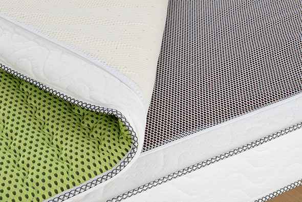 内胆:两面棕绷。面料:H-27(3D大眼面料)。里料:乳胶